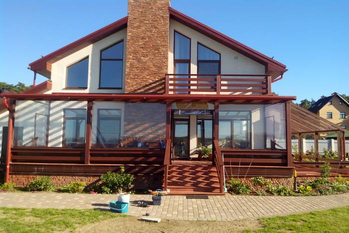 Первая из указанных технологий зачастую используется в процессе изготовления мягких стекол в частной сфере. Это связано с тем, что полотно, основой которого служит полиэстер, характеризуется богатой гаммой оттенков и отличными декоративными качествами. Вместе с тем окна в беседку, которые произведены в соответствии с данной технологией, отличаются эластичностью, стойкостью к износу и долговечностью – наравне с лавсановой нитью. Таким образом, можно подбирать любой цвет окантовки либо сочетание оттенков в соответствии со стилем оформления веранды или беседки.