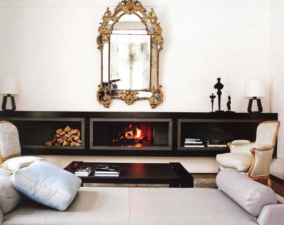 Несколько темных акцентов разбавят белый интерьер гостиной, не загромождая пространство