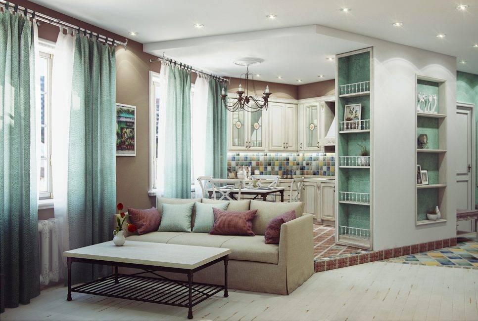 Такой дизайн комнаты может напоминать склад вещей из-за ограниченности площади и обилия всевозможных аксессуаров, свойственных провансу. Для небольшой гостиной нужно постараться не заставлять пространство мебелью и не использовать слишком много декоративных элементов.