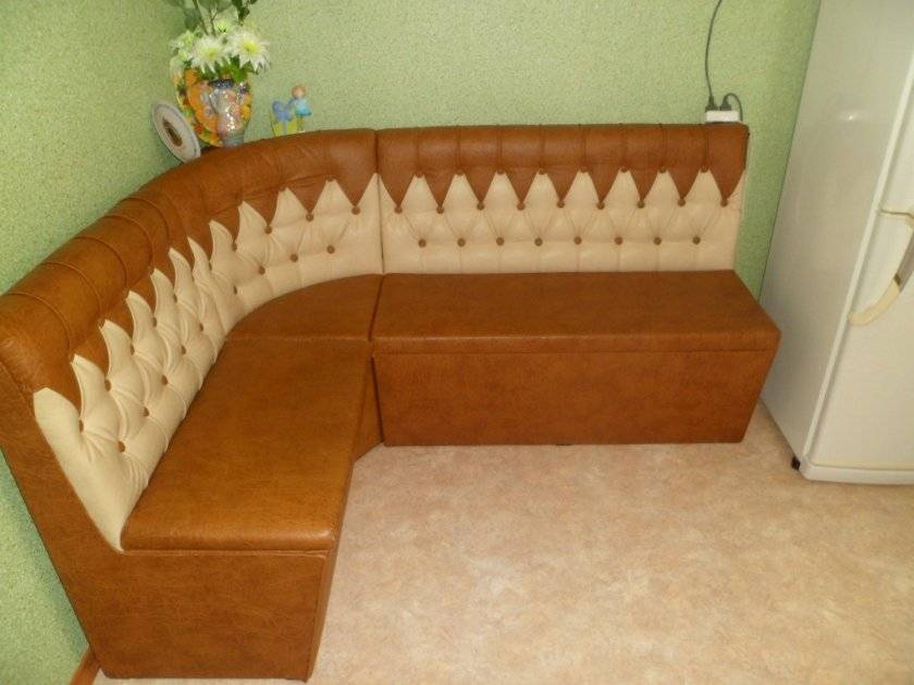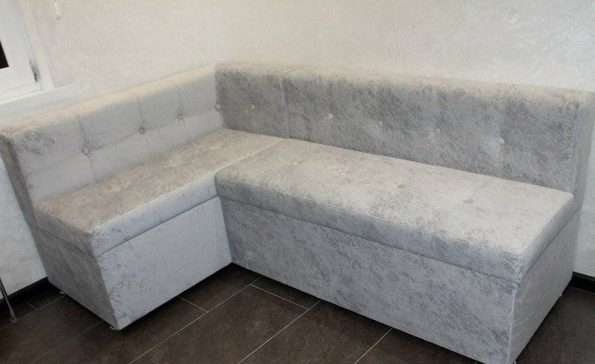 Ткань для обивки зависит от места близости дивана от плиты и раковины. Поверхность должна легко очищаться и не подвергаться воздействию химии.