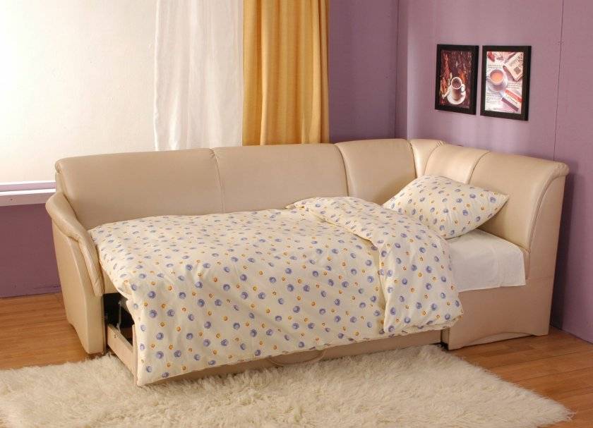 Самые удобные и практичные — раздвижные диванчики с кроватью-раскладушкой и мягкой пружинистой обивкой из пропитанных тефлоном искусственных тканей. С легкостью исполняют роль и комфортабельного сиденья, и полноценного спального места, и вместительной системы хранения поварского инвентаря и домашних продуктовых заготовок. К тому же не впитывают в себя запахи, испарения и загрязнения, не боятся повышенной влажности кухонной зоны, не требуют особого ухода и запросто ремонтируются.