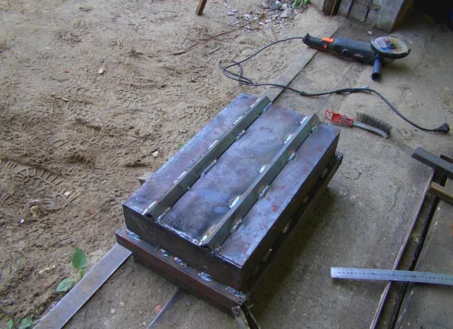 - К верхней части крышки изнутри приварить рейку, чтобы ее не повело. Наварить полосы по краям крышки, чтобы уменьшить прохождение воздуха и для плотного прилегания.