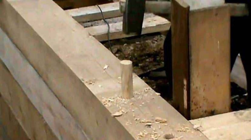 Теперь подготовьте брус, который будет служить мауэрлатом. Обработайте его дезинфицирующим средством и антипирентом (против пожара), хорошо просушите. Приложите брус к будущему месту закрепления с сделайте отметки там, где будут потом сверлиться отверстия. Отдельные части мауэрлата соединяйте прямым замком и дополнительно фиксируйте гвоздями в местах таких соединений.