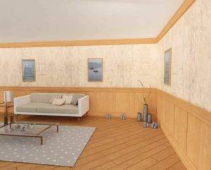 - Ампир, Консерватизм, Модерн, Классика, Георгианский и Готический стили. Для них можно применить шпонированные панели, листы или плиты в цокольной части стен и на потолке.