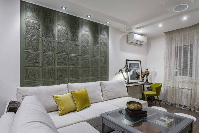 Рельефные из полиуретана или гипса создают эффект объема на стене, подойдут для отделки центральной стены зала или стены у изголовья кровати.