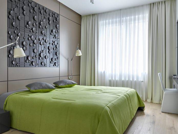 - Эклектика, Фьюжн. Одна стена или её часть выполняется окрашенными в яркие цвета (фиолетовый, ярко-жёлтый, малиновый, изумрудный) панелями.