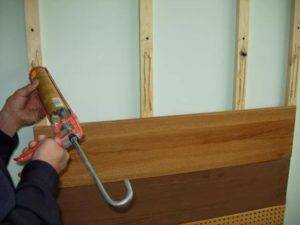 Если стена ровная, а облицовывать ее предполагается мягкими панелями из ткани или кожи, можно использовать клей. Обычно для монтажа используют «жидкие гвозди». При следующем ремонте очистка стен в таком случае может потребовать дополнительных усилий. Ее придется выравнивать. На клей можно монтировать и легкие листовые стеновые панели для внутренней отделки.