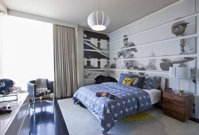 На фото спальня подростка с обшивкой стен и нанесением фотопринта, который подчеркивает индивидуальность и предпочтения ребенка.