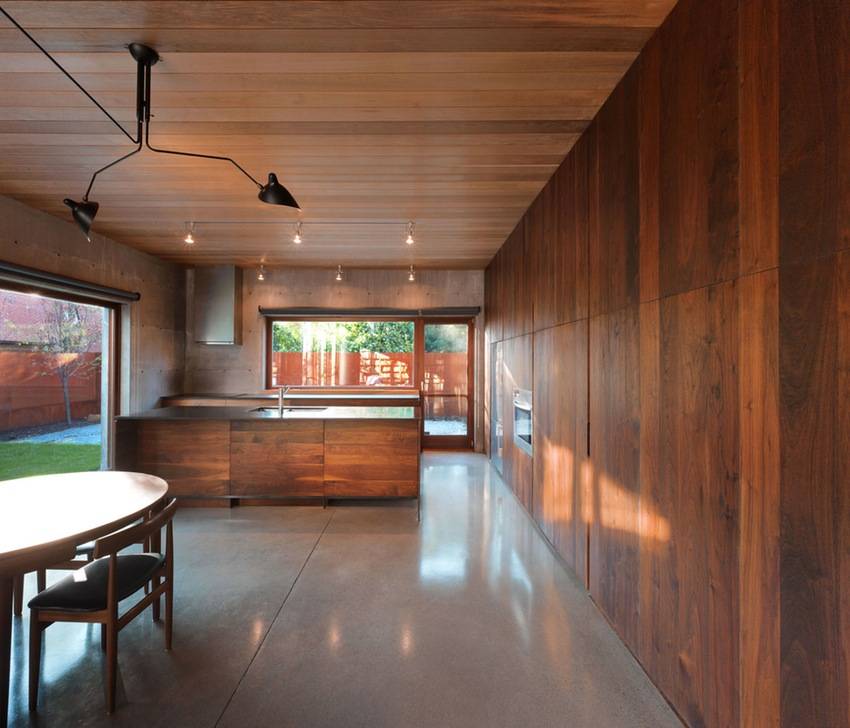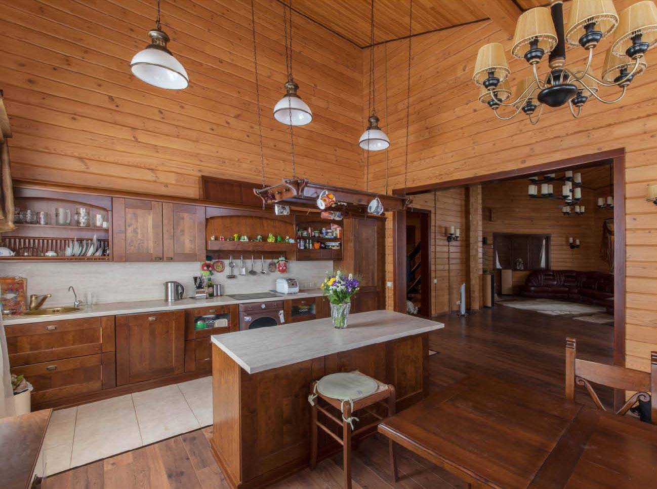 При облицовке цокольной части стен она не должна превышать трети высоты стены, иначе визуально потолок окажется ниже. Если комната небольшая, то отделывать её полностью деревом нецелесообразно, поскольку она станет казаться меньше, а пространство – тяжёлым. В таком помещении лучше ограничиться одной стеной.