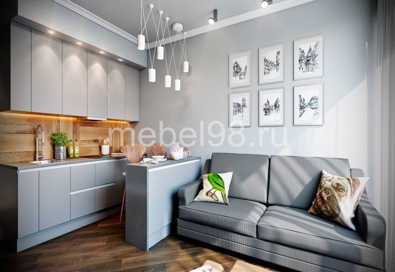 Серо-белая кухня-гостиная