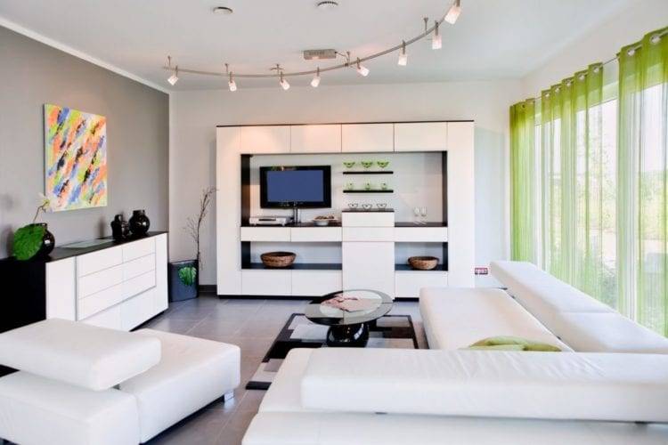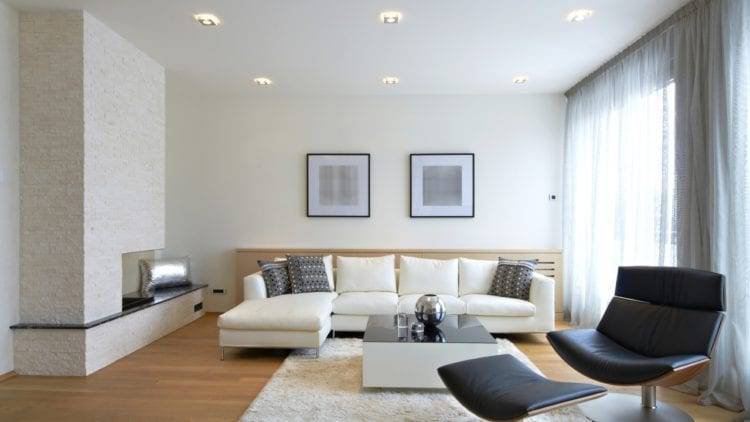 Освещение в белой гостиной