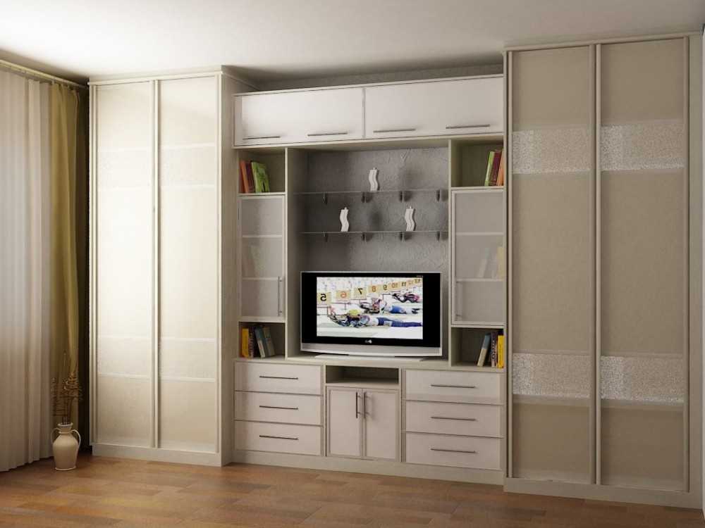 Стенка. Для гостиной шкаф-стенка служит универсальным вариантом, сочетающим в себе плюсы других видов.