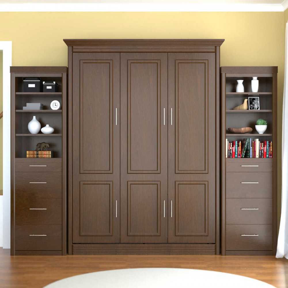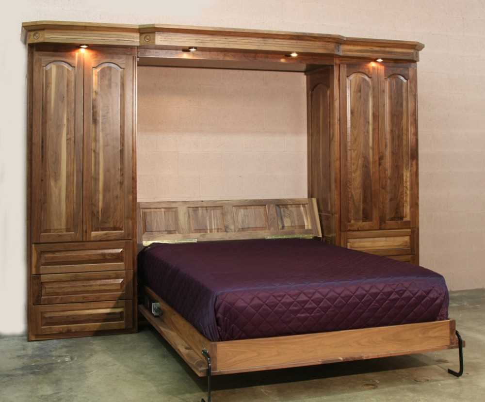 Раньше были модными массивные стенки, которые представляли собой комплект шкафов в едином стиле. Они ставились последовательно у какой-либо стены, и занимали достаточно много места.