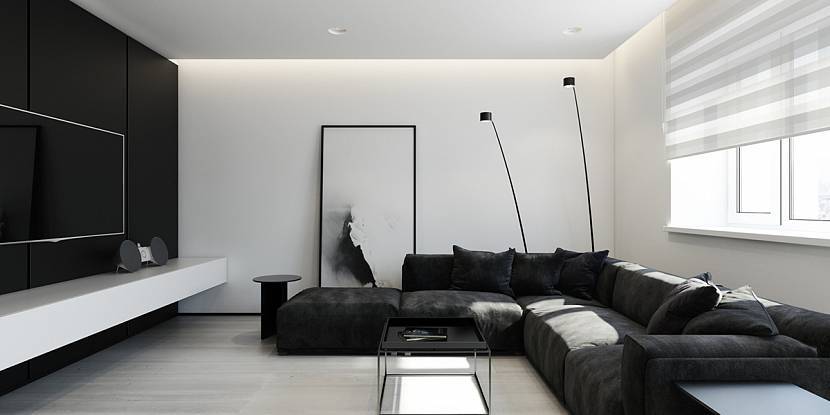 Так как бело-черная гостиная не обладает четкой принадлежностью к определённому стилю, то задача, ставящаяся перед мебелью, гораздо сложней, нежели в обычном случае.