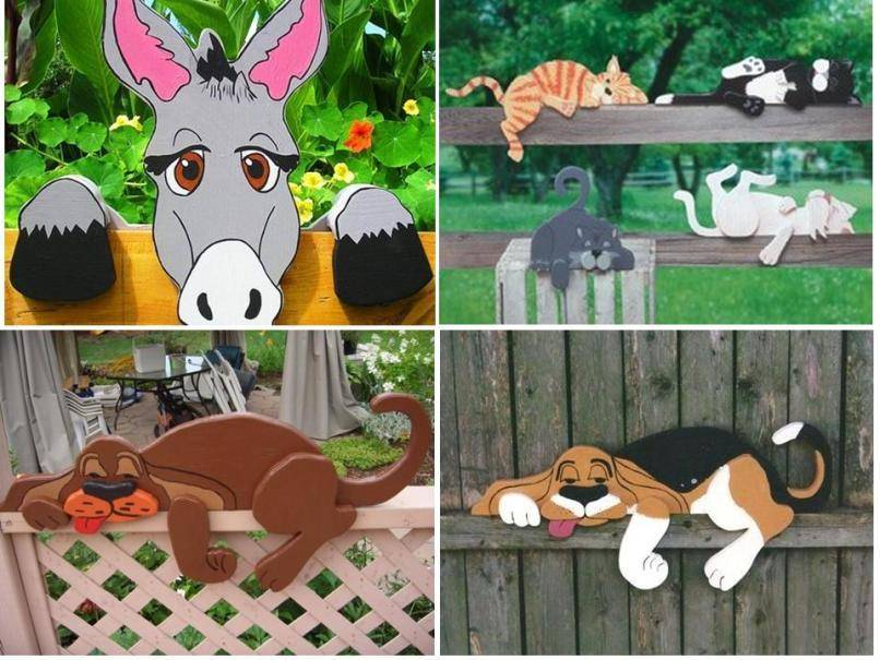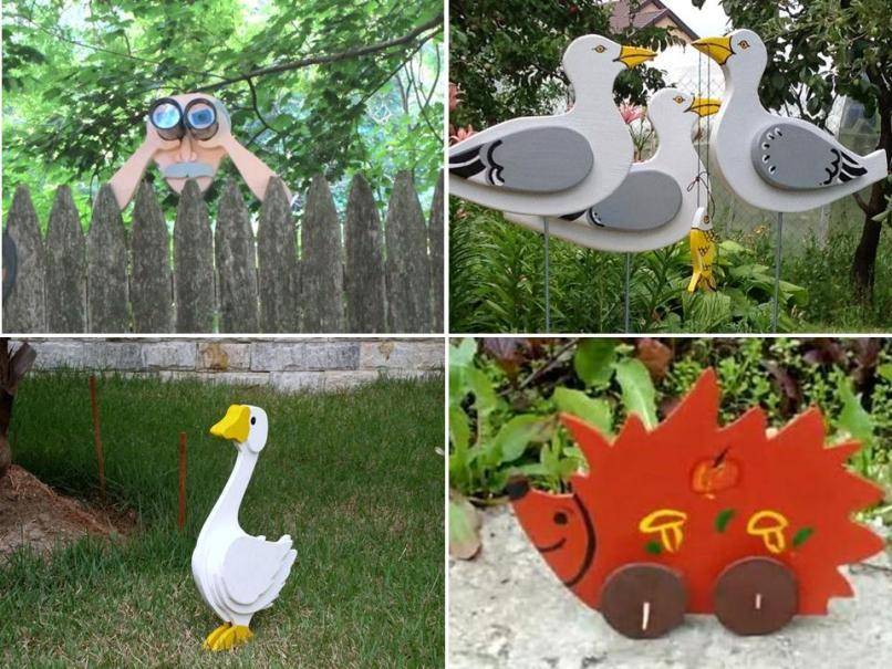 Фигурки из фанеры могут быть в виде смешных персонажей, что внесет нотку забавы в дизайн участка.