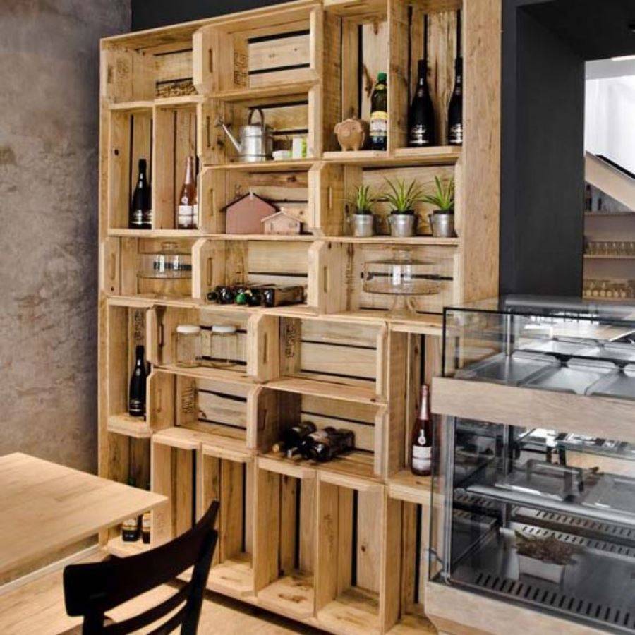 Хорошенькие полочки получатся из кусочков поддонов. При этом высоту и ширину полки хозяин определяет самостоятельно.