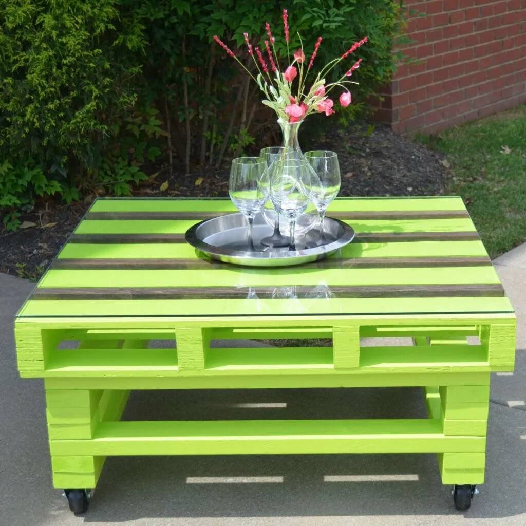 Из деревянных поддонов своими руками можно сделать отличные столы.
