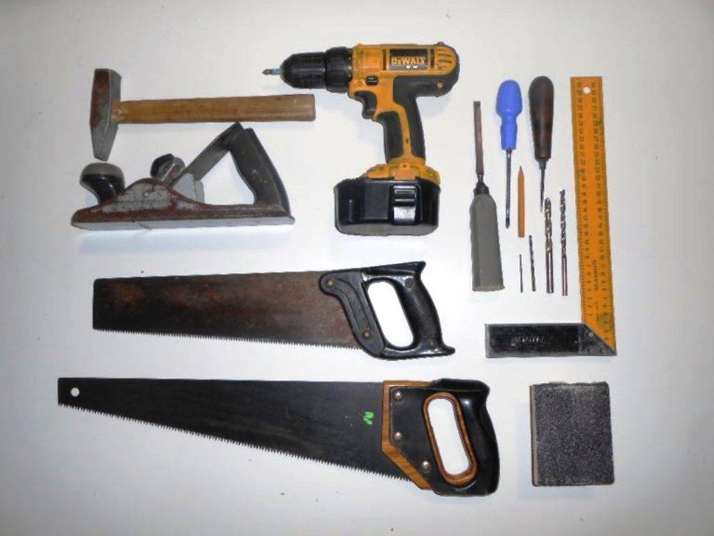 Предварительно потребуется собрать инструмент, который будет задействован в изготовление мебельных гарнитуров. Мастеру понадобятся молоток и гвозди, наждачная бумага, краска, лак, пила, вещество для предотвращения деформация материала, клей, электрический лобзик, дрель, а также дополнительные аксессуары для сборки (колесико, ручка, компоненты для декорации).