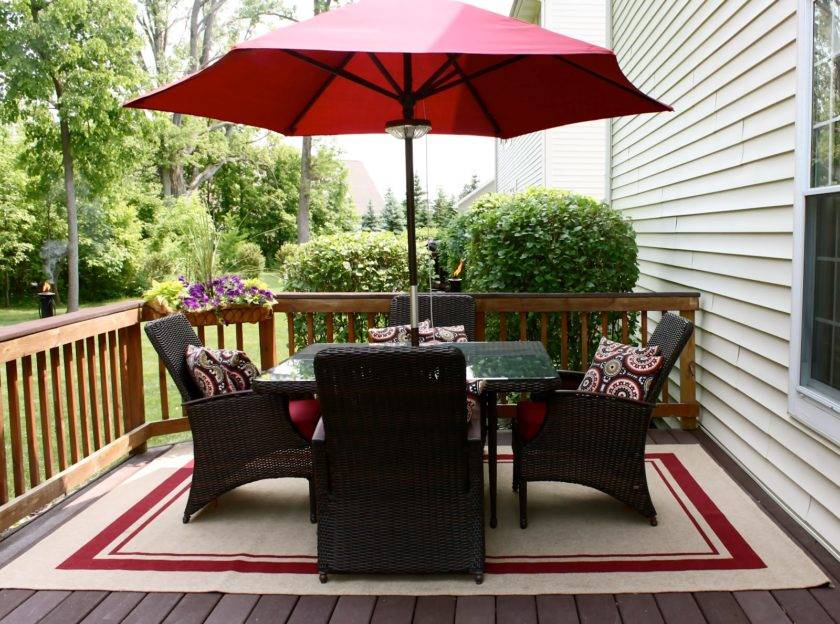 Лучше для таких случаев выбирать уличную мебель. Она устойчива к воздействию окружающей среды. Это пластиковые предметы обстановки или плетеные. Можно использовать складные конструкции, которые на зиму заносятся в теплую комнату.