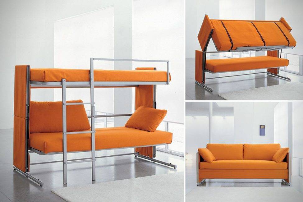 Для детских комнат неплохой вариант — диван, который трансформируется в две кровати, расположенные одна над другой. В данной модели задействован сложный механизм, так что стоимость таких диванов-трансформеров немаленькая.