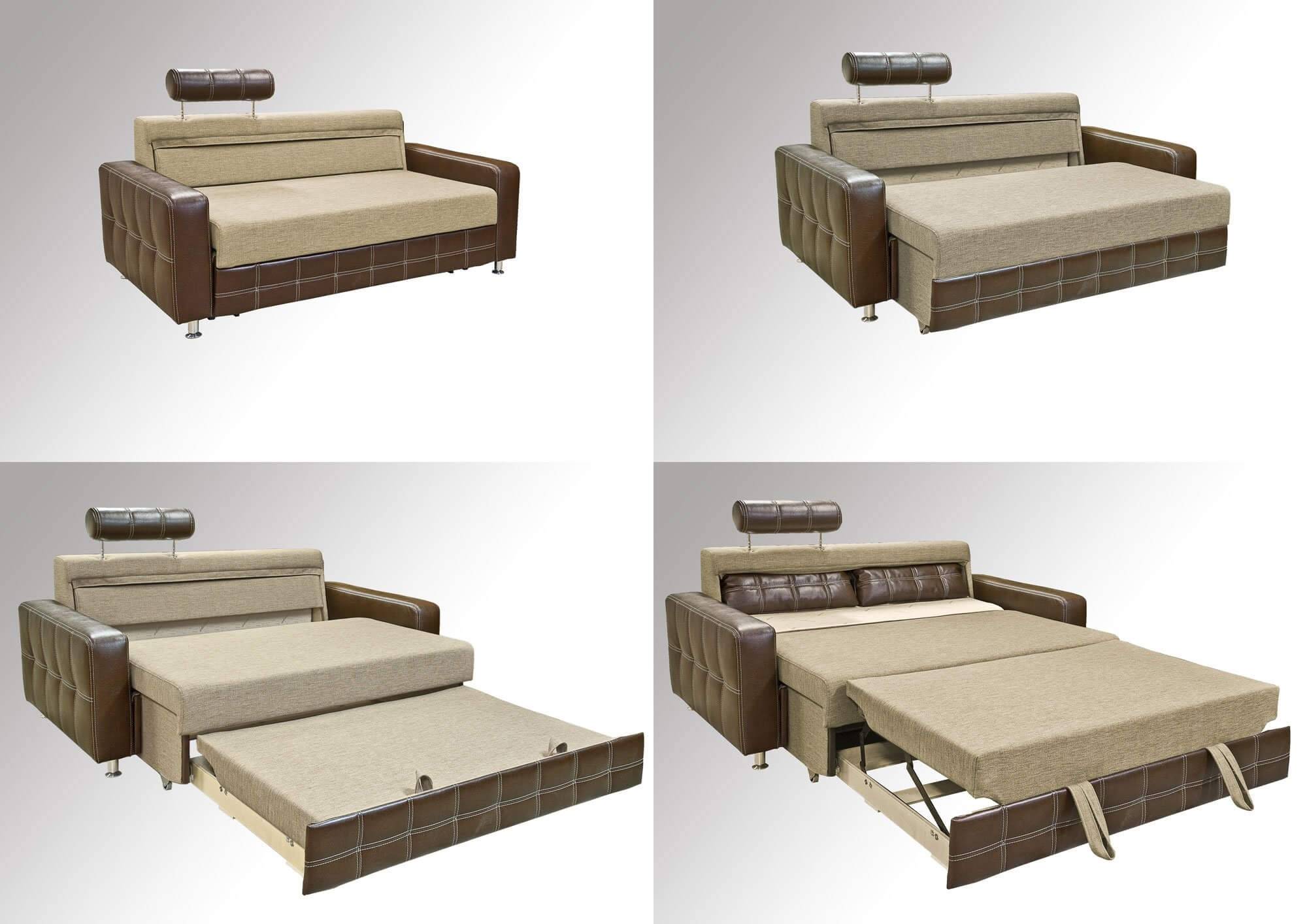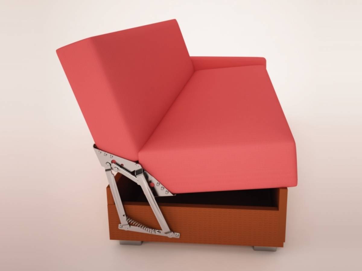Имеет современный высокотехнологичный механизм трансформации с системой пружин. Для преобразования в кровать сиденье приподнимают, двигая вперед, после чего, находящуюся под ним часть поднимают наверх. При раскладывании опоры сидения не задевают пол. В раздвинутом виде занимает мало пространства, поэтому проблем с его установкой нет.