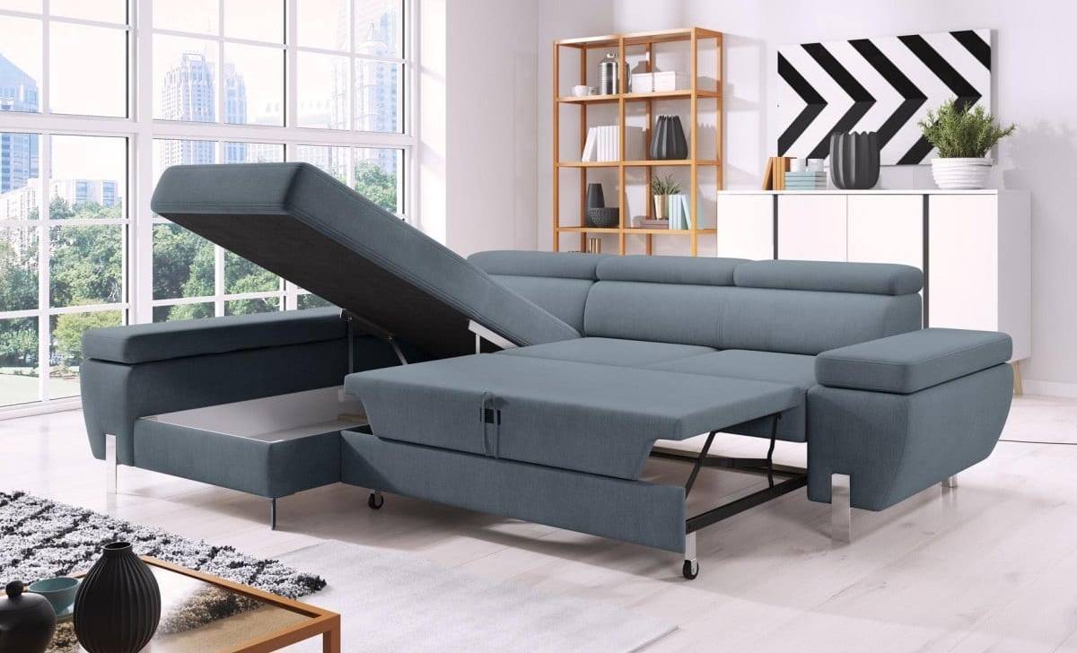 - Прямые диваны с данным механизмом не имеют короба для хранения белья. Но в угловых моделях его обустраивают в боковой секции.