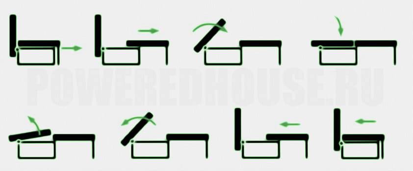 Раскрывается такой диван достаточно просто. Следует выдвинуть основу, на которой расположено сидение. Тянуть ее надо на себя, до упора. В итоге из дивана должны вылезти все три элемента механизма раскладки. Теперь остается только разместить верхнюю часть сидения в образованную нишу. Для этого ее нужно повернуть по круговой оси. После всех этих действий диван с механизмом раскладки «Телескоп» будет разложен.