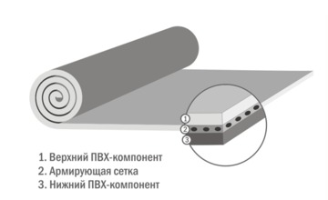 В основу этого материала входит поливинилхлорид. Для того чтобы он был более пластичным, в качестве добавки применяются летучие пластификаторы. Но материалу также требуется и упругость, поэтому дополнительным его элементом служит полиэфирная сетка, играющая роль армирующего слоя.