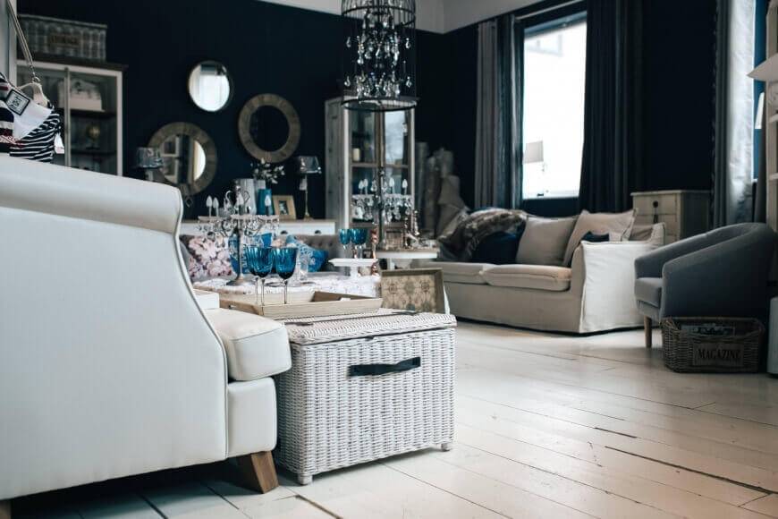- Если вы обладатель маленькой квартиры, откажитесь от плетёной мебели и классических больших диванов, которые визуально перегружают пространство.