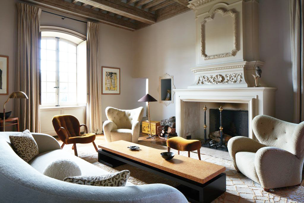 Большой камин и уютная мебель характерны для кантри