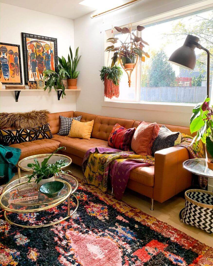 Фото стиля бохо в интерьере гостиной.