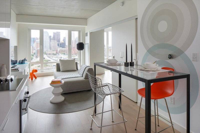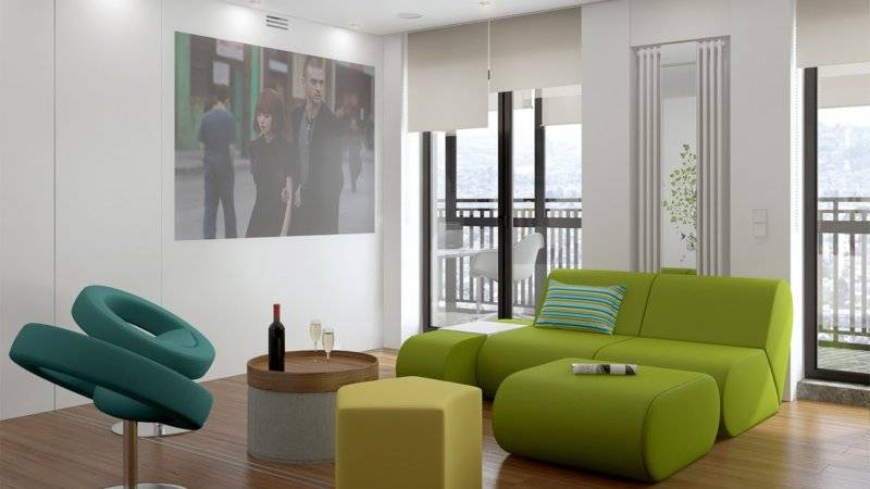 Дизайны маленьких квартир часто строятся по принципу акцентов. Яркие красочные всплески на нейтральном фоне сразу придают помещению настроение, атмосферу и индивидуальность.