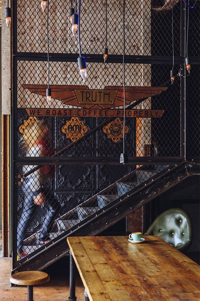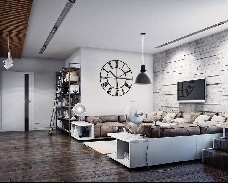 Это первое с чем можно провести ассоциативный ряд, при упоминании бетонного покрытия. Для стиля характерно отсутствие декоративной отделки. Кирпичная кладка и бетонные плиты гармонично смотрятся в дуэте.