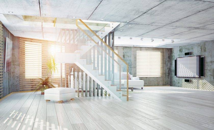 Светлые оштукатуренные стены и полы