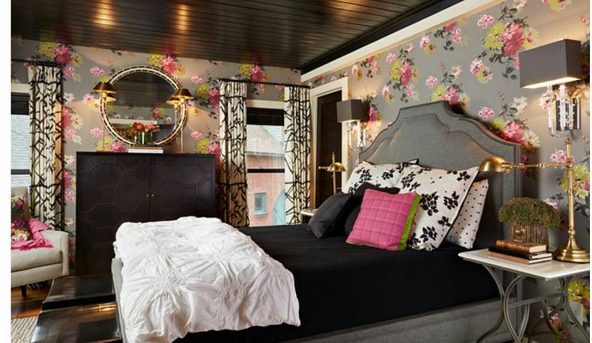 Часто интересный результат можно получить, используя узорчатые обои как фон для черной мебели, особенно, если у предмета простая (современная) форма. Чтобы интерьер получился динамичным, стоит учитывать следующие рекомендации: