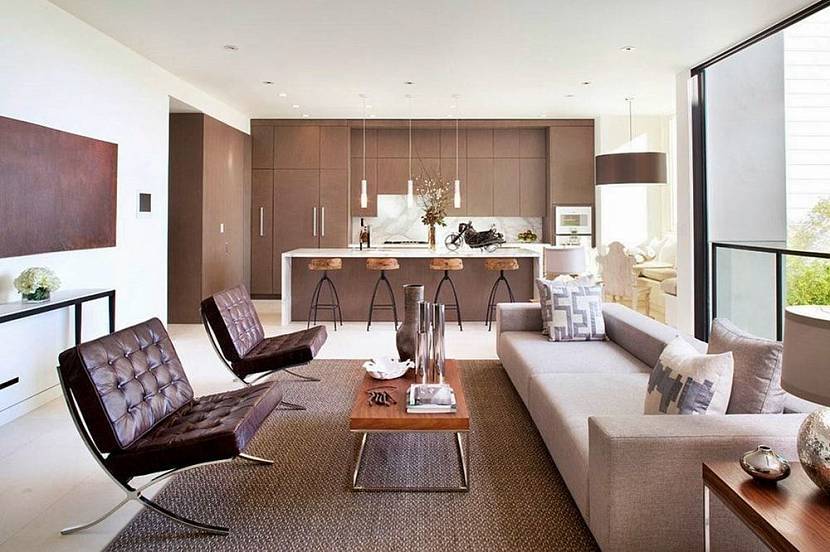 Приверженцы модерна выберут теплые оттенки, необычную форму и предметы современного искусства в качестве декора.
