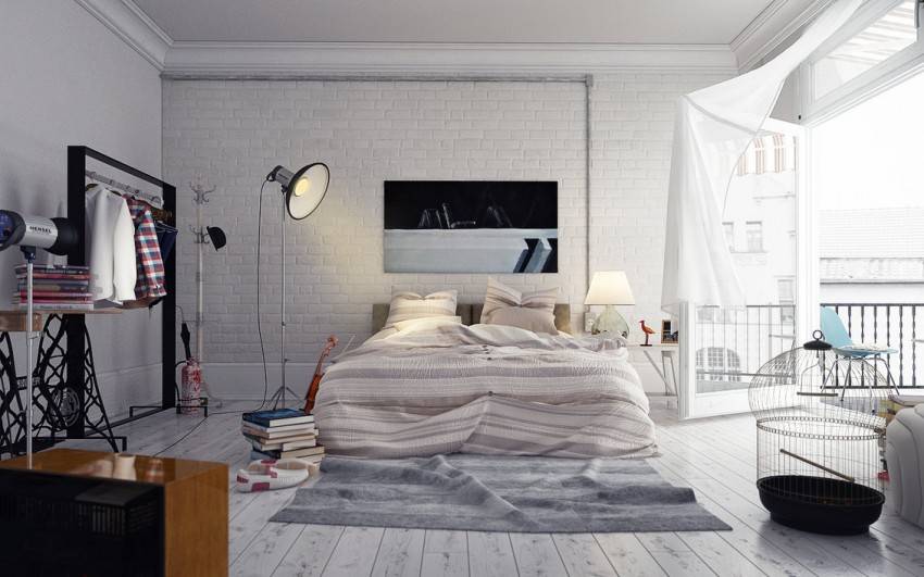 Минимализм позволяет использовать минимум простой, практичной мебели и иметь максимум свободного пространства. Огромный, во всю стену шкаф-купе с зеркальными дверцами прекрасно впишется в этот стиль. В таком шкафу удобно разместятся все вещи, а его зеркальные створки визуально расширят пространство. Уместен будет и диван-трансформер с металлическими ножками.