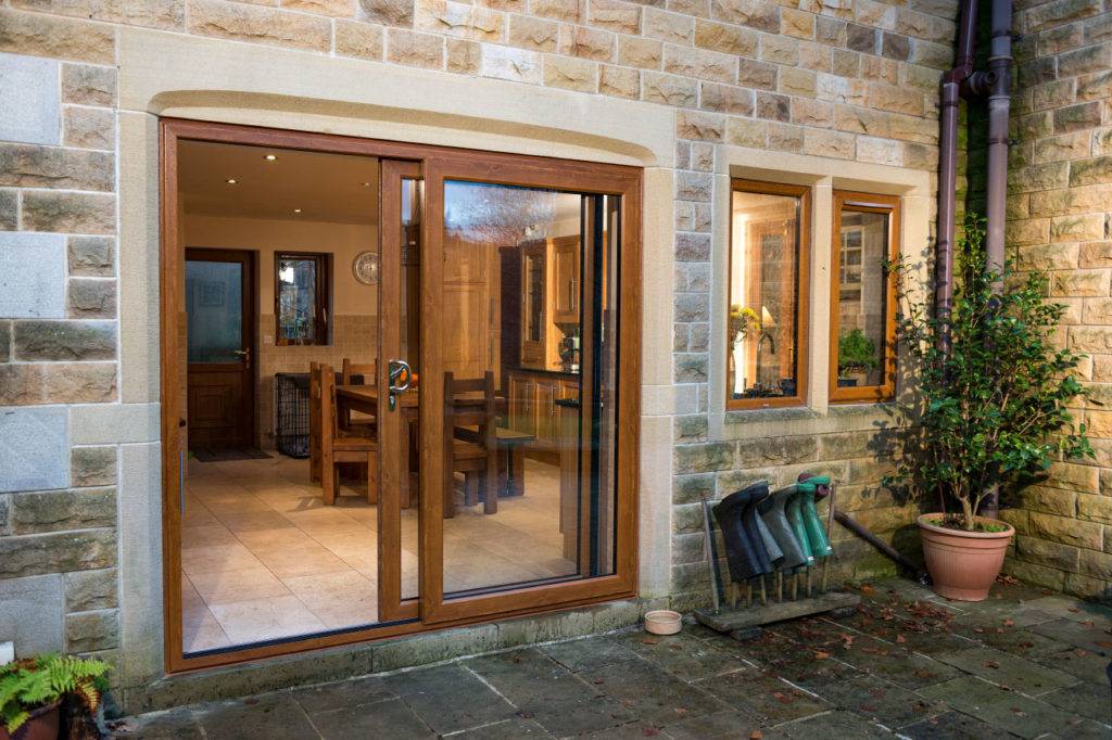 В отличие от первого варианта, раздвижная конструкция несколько сложнее в монтаже. Она состоит из рельсов для дверей и роликов, благодаря которым створки раздвигаются. Из-за того, что двери открываются в сторону, данный тип двери в качестве входных используется очень редко. Такую дверь можно использовать в загородном доме как выход во двор или в качестве черного входа.