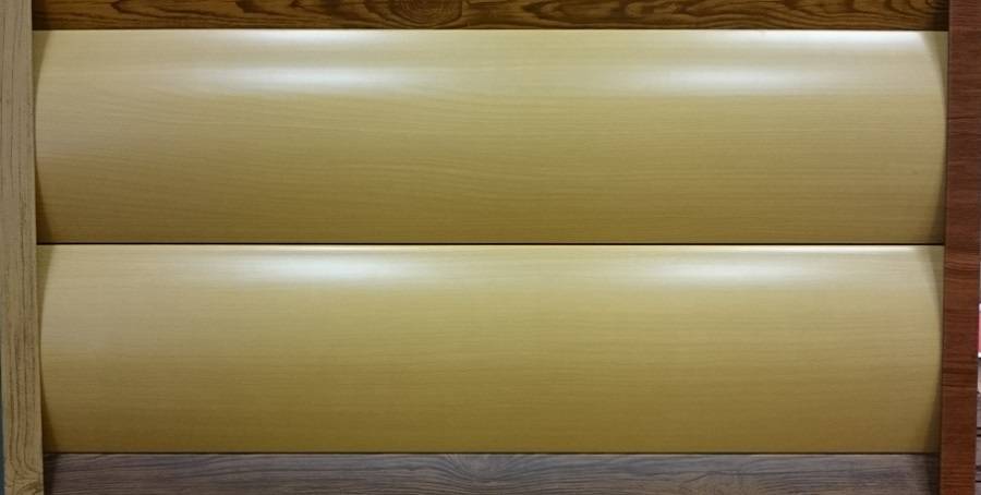 - Полимерное покрытие. Рисунок, повторяющий деревянную текстуру, наносится методом фотоофсетной печати, что придает панелям реалистичный вид. Облицовка столь удачно имитирует геометрию и цвет древесины, что разница улавливается только при ближайшем рассмотрении.