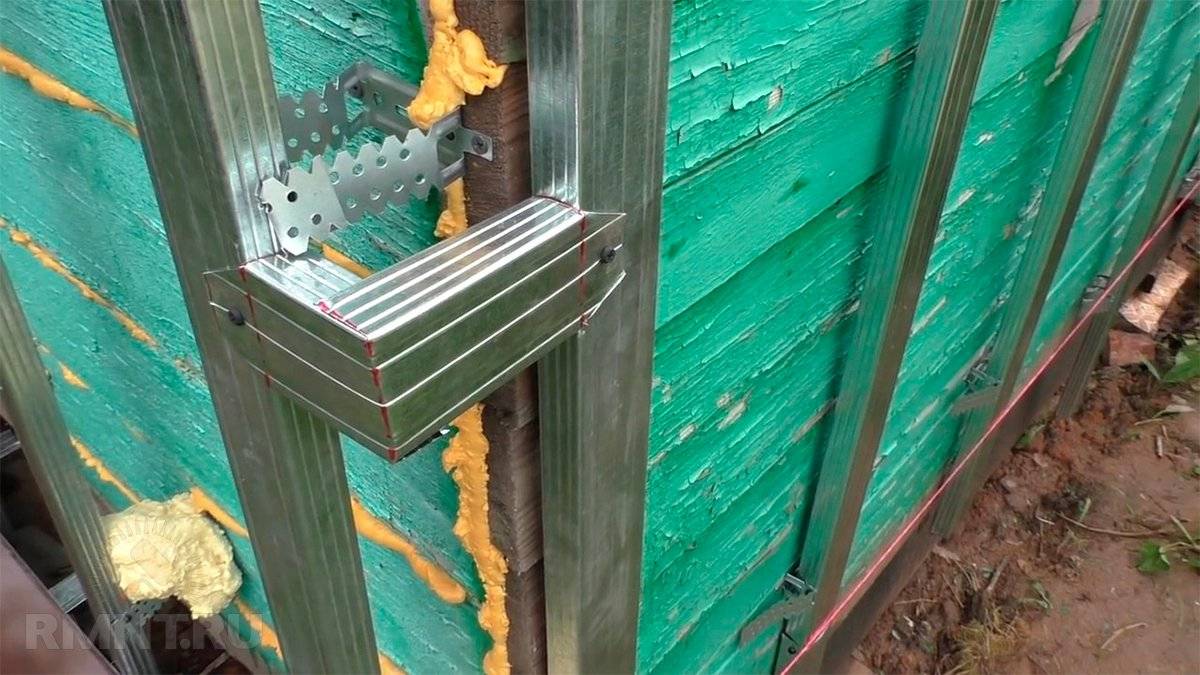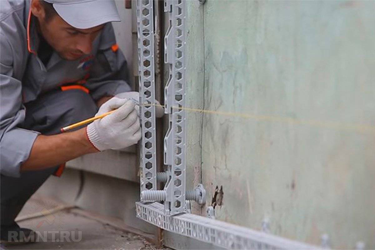 С помощью лазерного уровня выполняют разметку стен и монтируют угловые элементы обрешетки. Металлический профиль фиксируют шурупами на специальные крепления. Шаг обрешетки зависит от размеров утеплителя и пароизоляционного материала.