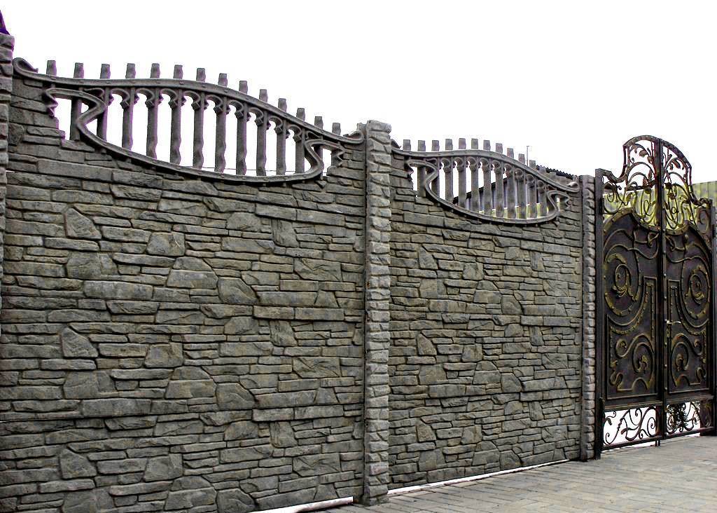 - широчайший ассортимент еврозабора, который может имитировать кирпич, сланец, бутовый камень, дерево и даже иметь ажурные элементы;