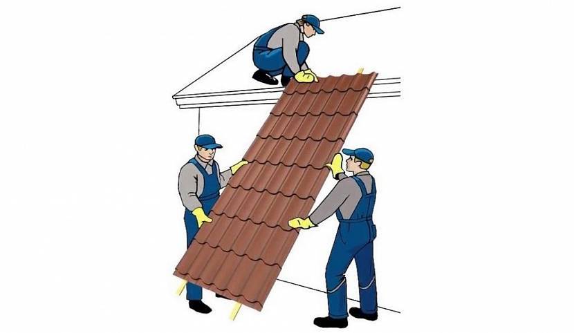 Подъем на крышу листов металлочерепицы оптимального размера вручную сэкономит средстваИсточник profil-stroy.ru
