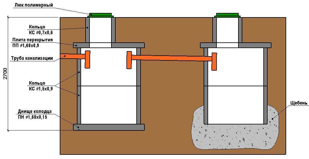 Увеличение объема возможно за счет преобразования выгребной ямы в септик с переливом. Потребуется пристройка еще одного колодца – с фильтром на дне или герметичного (зависит от типа основного выгреба).