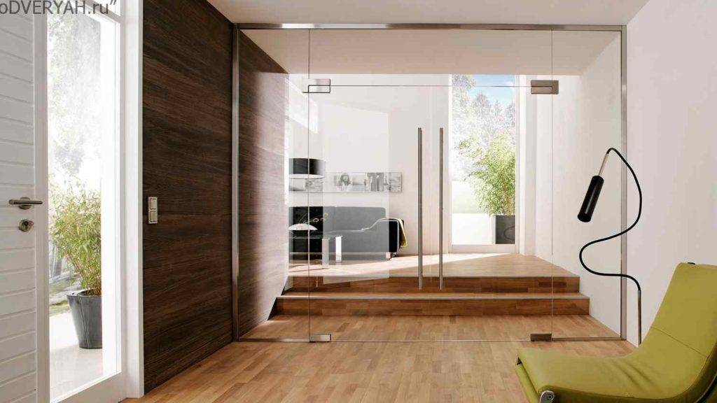 Модели со стеклянными вставками в квартиру ставят для дополнительного освещения прихожих, темных коридоров и проходов. Полностью стеклянная дверь состоит из каленого листа либо из многослойного «триплекса». Последний тип состоит из двух склеенных листов стекла с прослойкой из пленки, на которую по желанию может быть нанесен рисунок. Каленое стекло отличается прочностью, гибкостью и устойчивостью к перепадам температур. При случайном повреждении стекло либо рассыплется на неострые осколки, либо образуется сетка трещин на пленке.