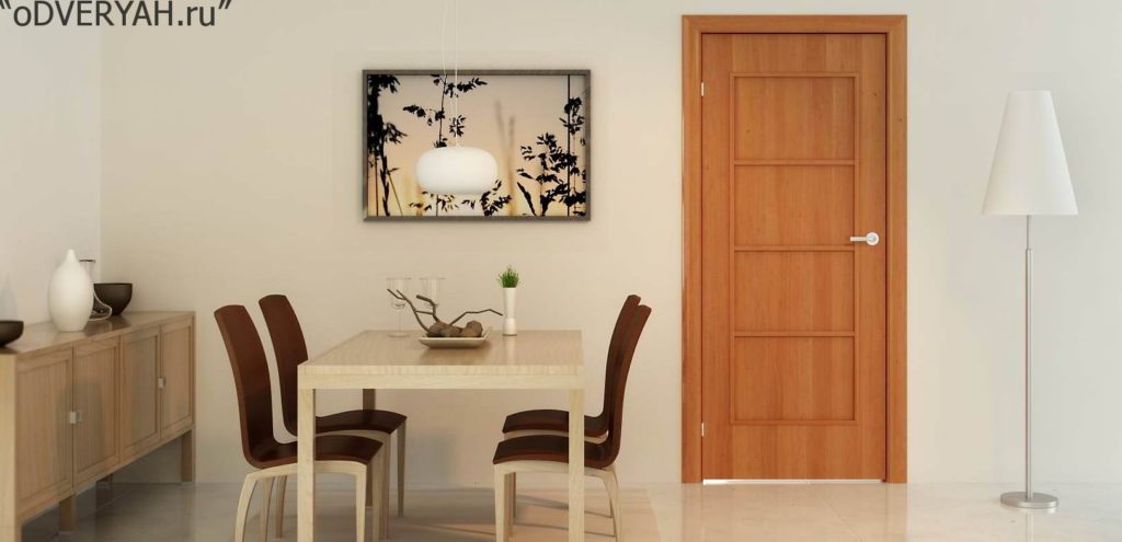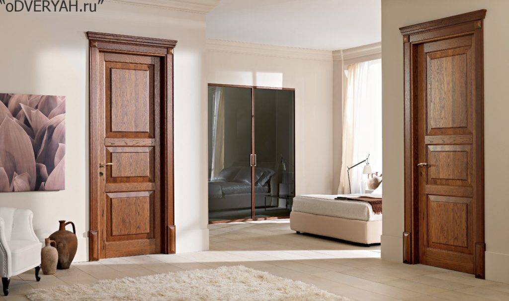 Филенчатые двери делают из досок или цельного бруса, однако более популярным является клееный вариант. Чтобы материал имел красивый внешний вид, его обклеивают шпоном из дерева. Если дверь изготовлена качественно, ее сложно отличить от конструкции из цельного массива.