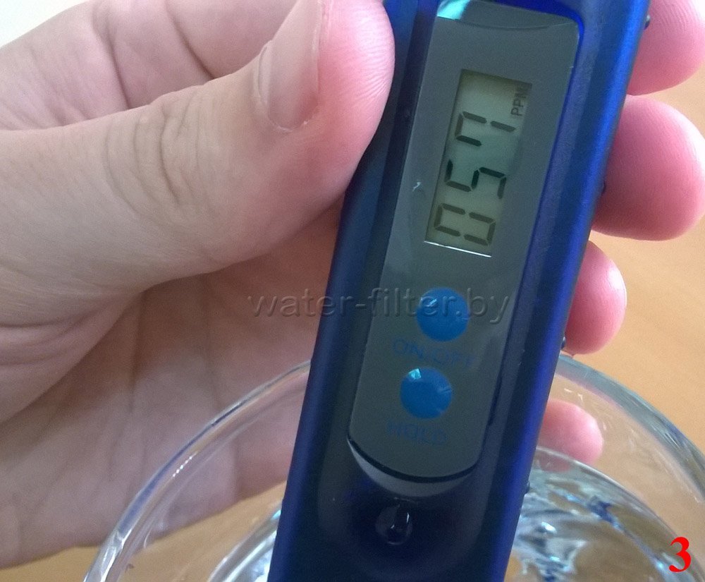 На самом деле все несколько иначе, ведь вода, прошедшая очистку в системе обратного осмоса очищается не на 100%. В этом вы сможете убедиться сами при сравнении образцов из крана, после фильтра и после минерализатора. Итак, самое время для опытов!