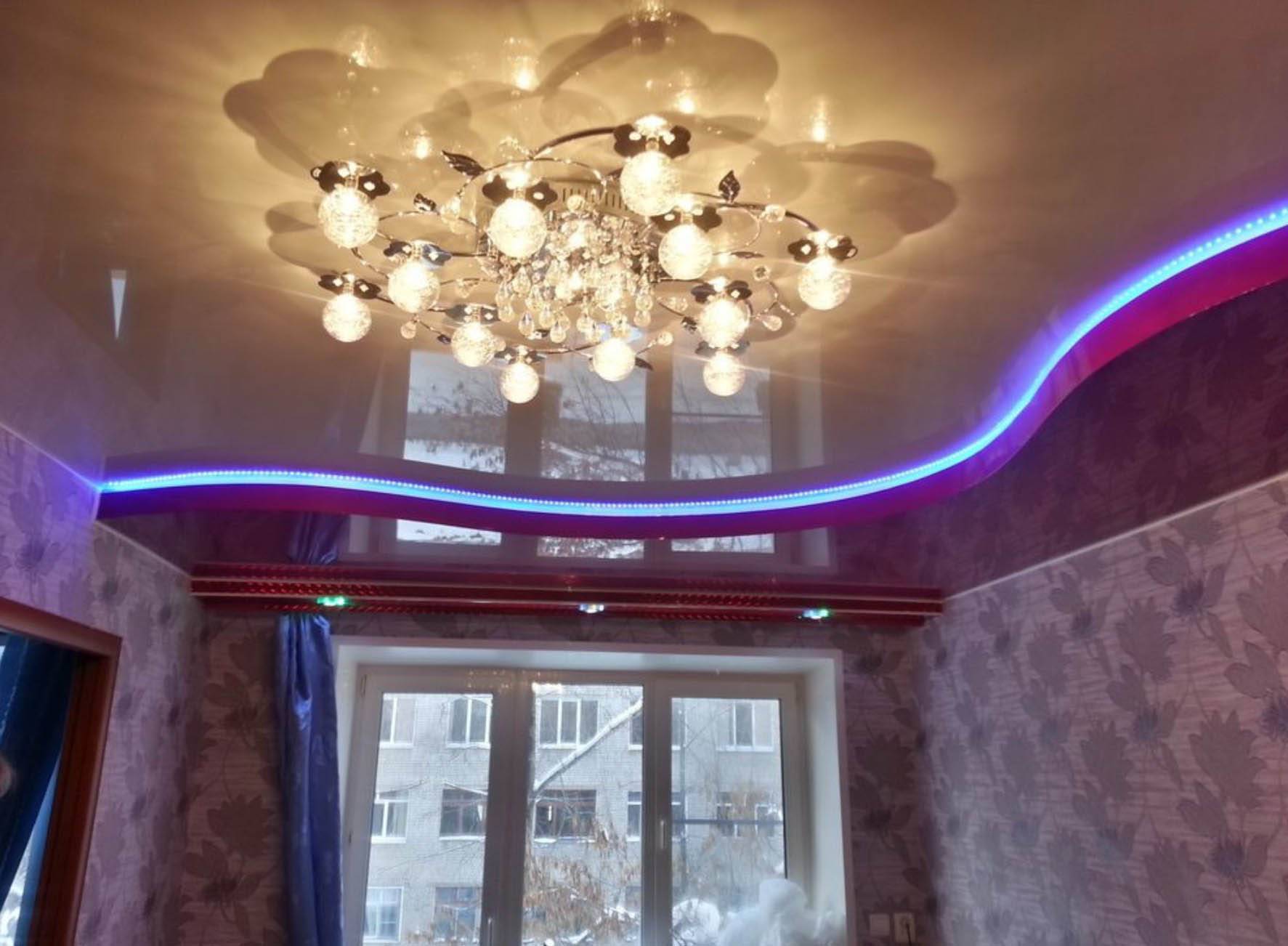 - LED-ленты – светодиодные полосы, которые протягиваются по периметру или вдоль одной из стен и здорово подсвечивают пространство, являются базовым элементом так называемой скрытой подсветки;