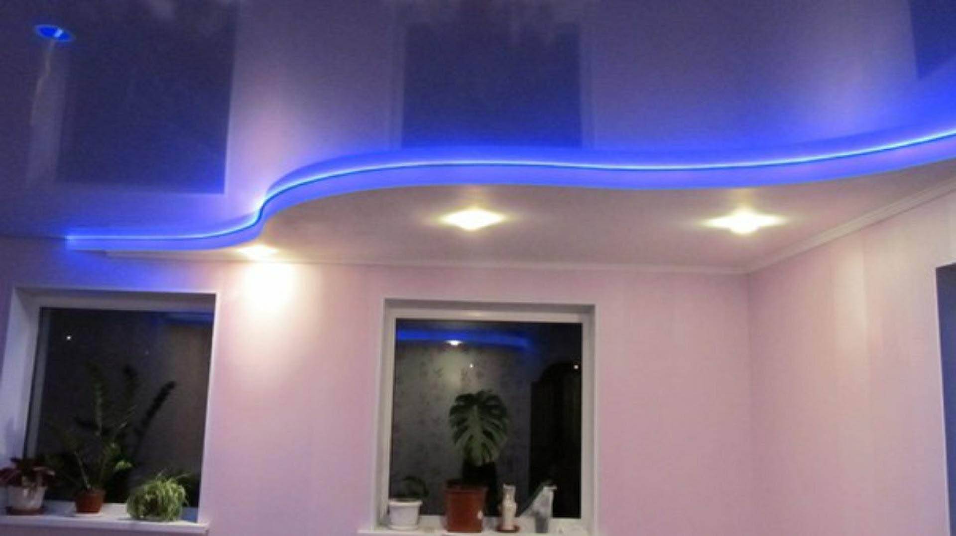 Светодиодные ленты являются самым лучшим осветительным оборудованием в случае устройства подвесных натяжных потолков. И это понятно, поскольку светодиодные светильники потребляют минимум электроэнергии. К тому же они практически не нагреваются, что гарантируют больший срок эксплуатации винилового полотнища. Света они дают достаточно, несмотря на их небольшие размеры, а цветовой спектр у них различный. Кроме этого, светодиодные ленты обладают дополнительными преимуществами: