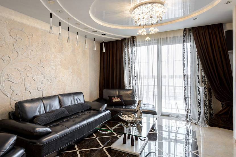 Для интерьера модерн подойдут модные шторы из легких и струящихся фактур в монохромном исполнении, а для классического интерьера – из парчи или бархата.