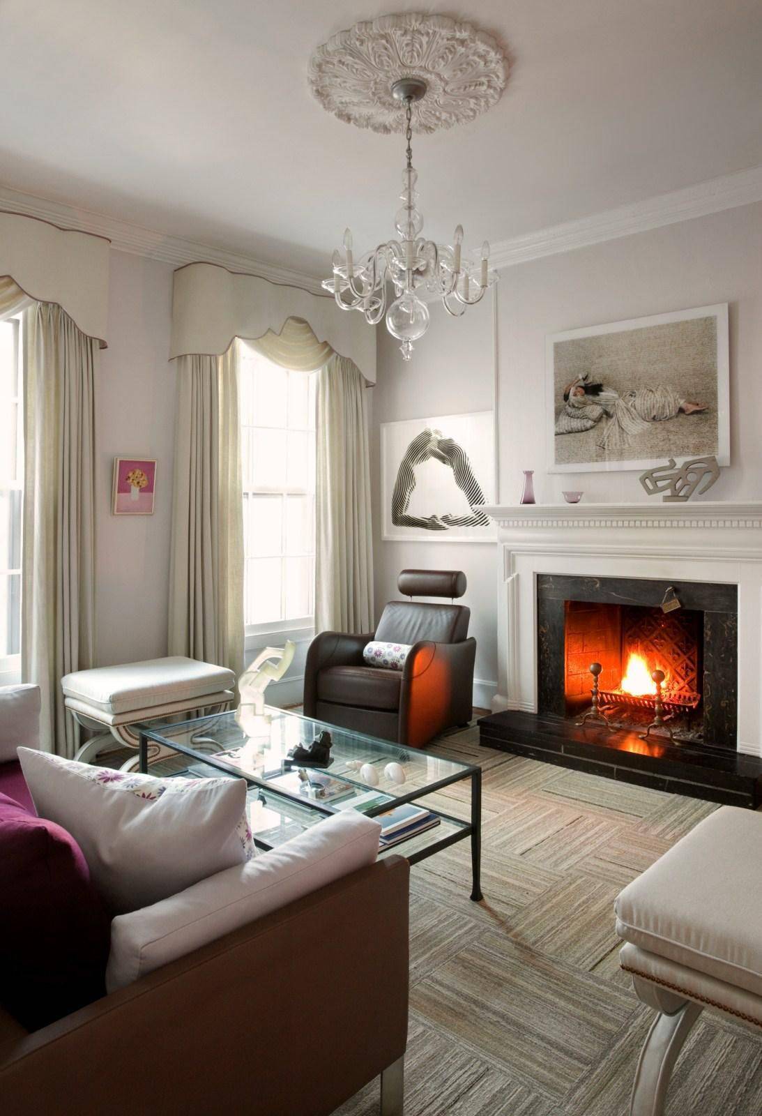 При помощи классических штор в зале можно создать дополнительный уют и домашнюю атмосферу. К преимуществам классических моделей относят: